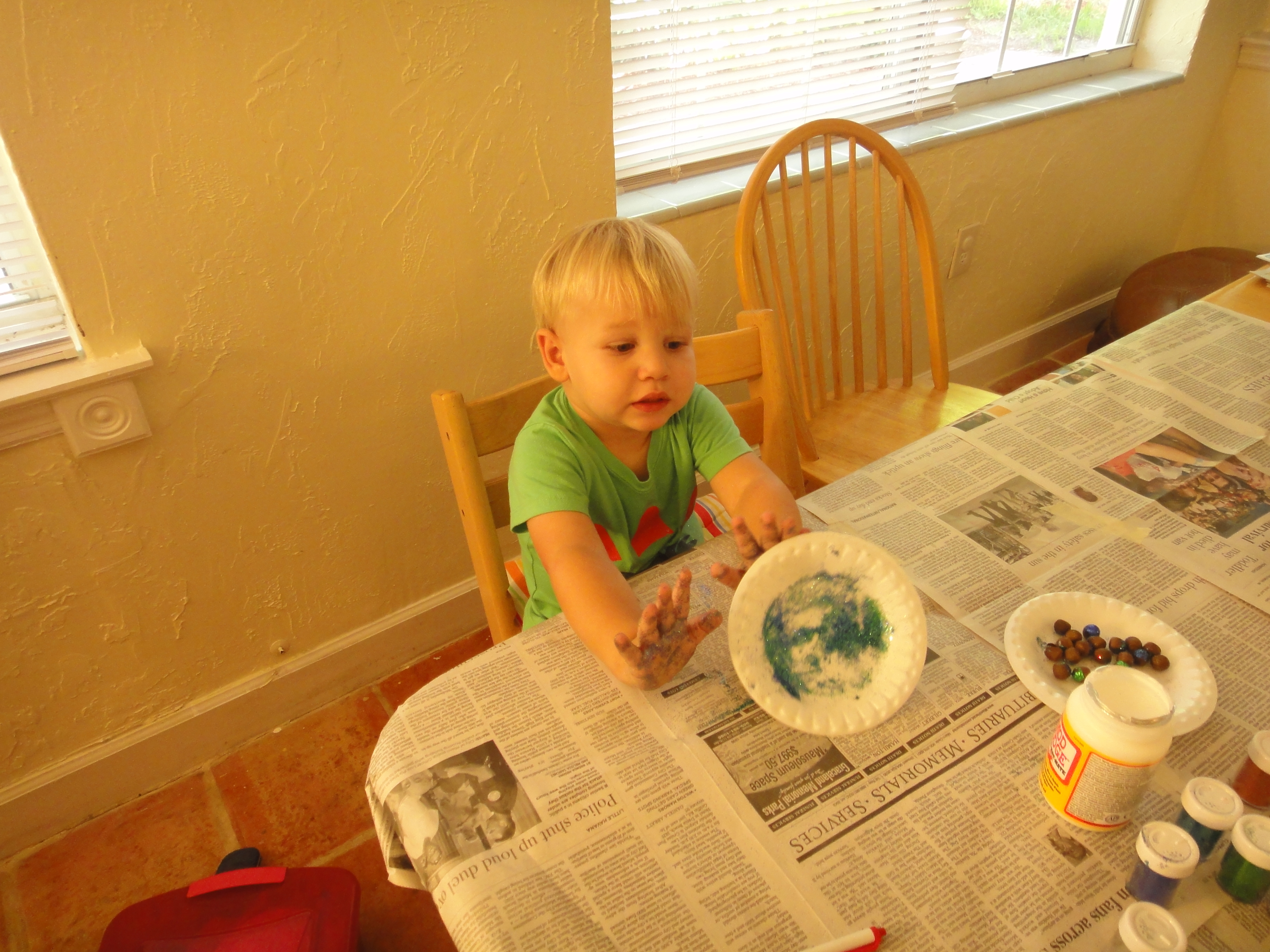 Later today, when they are all dry, we will put them in a large glass bowl I found at Michael’s for about a buck and put them on the windowsill next to the fish. I’ll post a picture of the finished product once the kids are up from their nap…. and I have vacuumed the house for the 87th time.