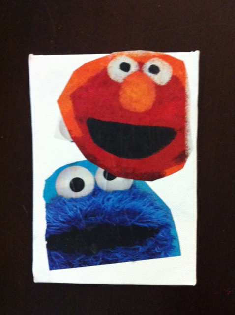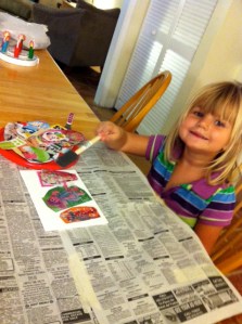 The project ended when Matilda used ALL — did I mention ALL? – of her pictures on her 6 x 8 inch canvas. Nobody got hurt, so despite it not turning out the way I had expected, I will consider this a successful project.