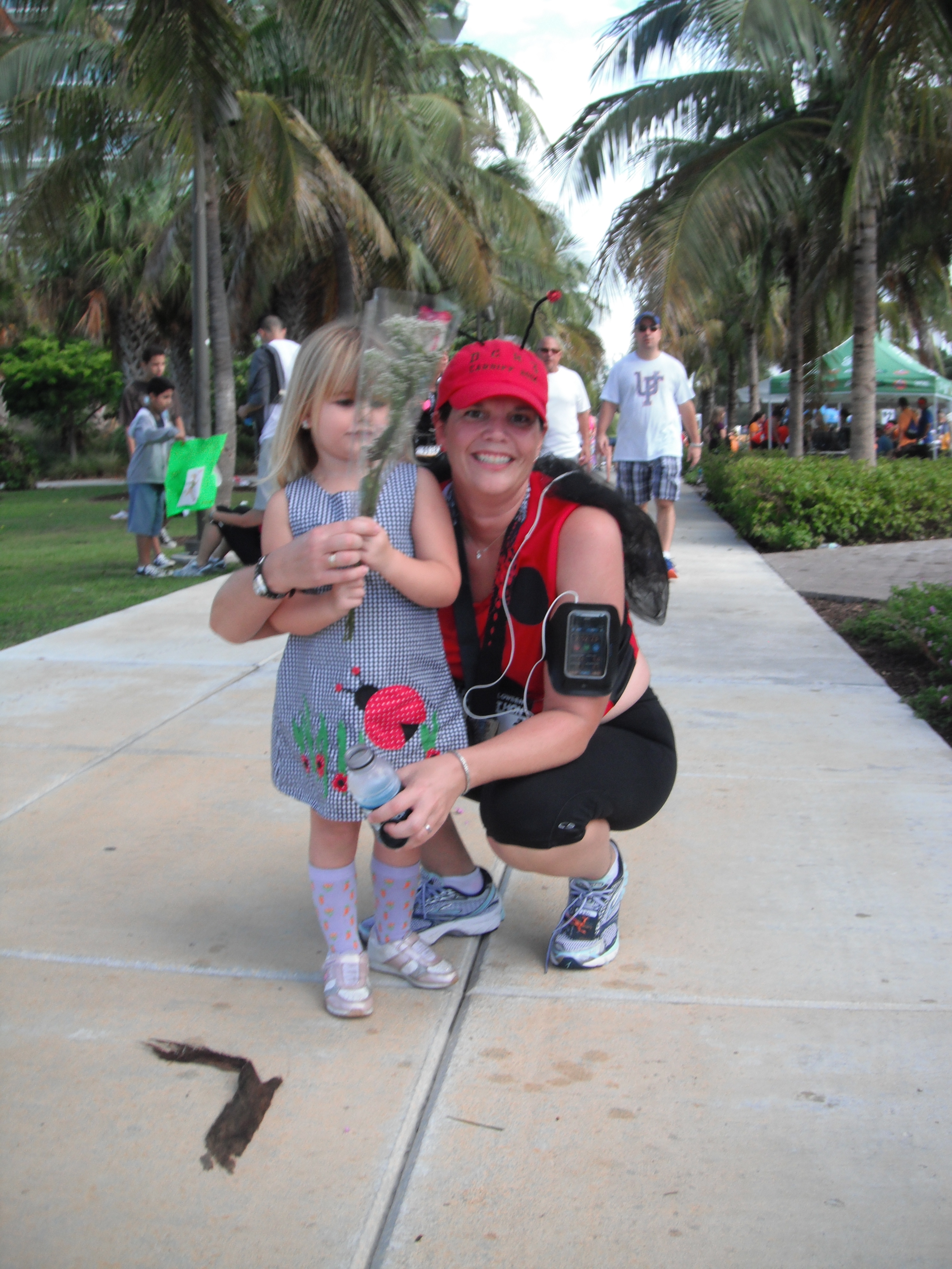 If you’ve been following along here, or any of my freakish status updates on Facebook, you may know that I completed my first ever Half-Marathon this past Saturday, October 29, 2011. It was the Miami Beach Halloween Half Marathon, and believe it or not, it was a lot of fun. I bought a discounted red shirt from Sport Authority, found some left over black fabric from an old quilt project, some iron-on Heat-N-Bond, pulled out some black tool from old costume, and some pipe cleaners….and about an hour later voilå! Lady Bug.