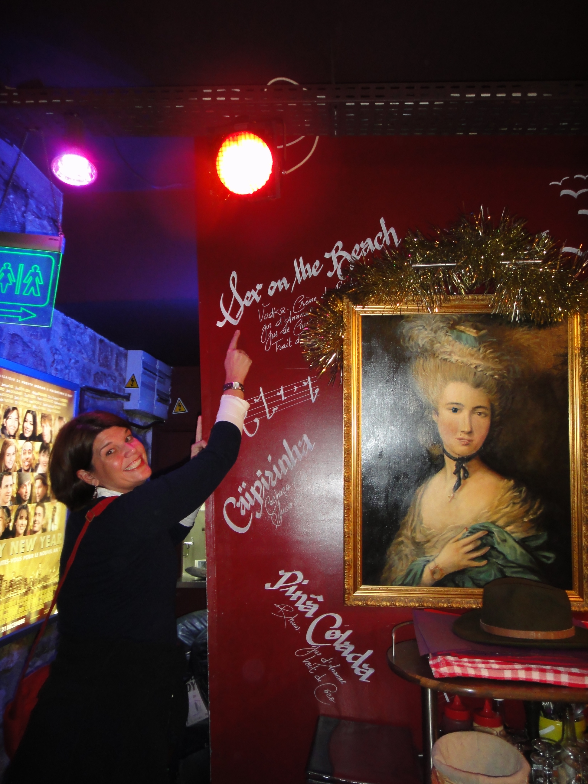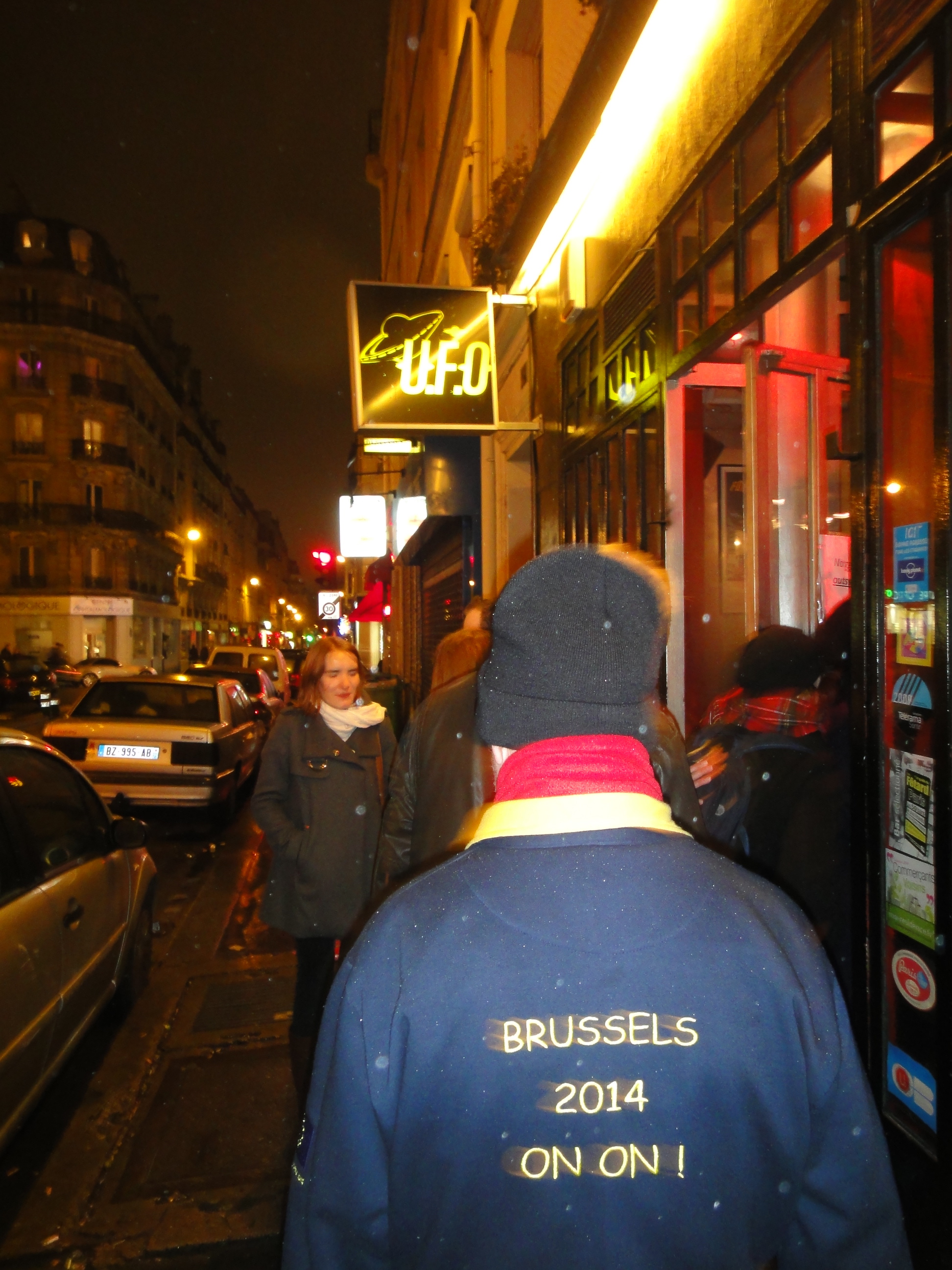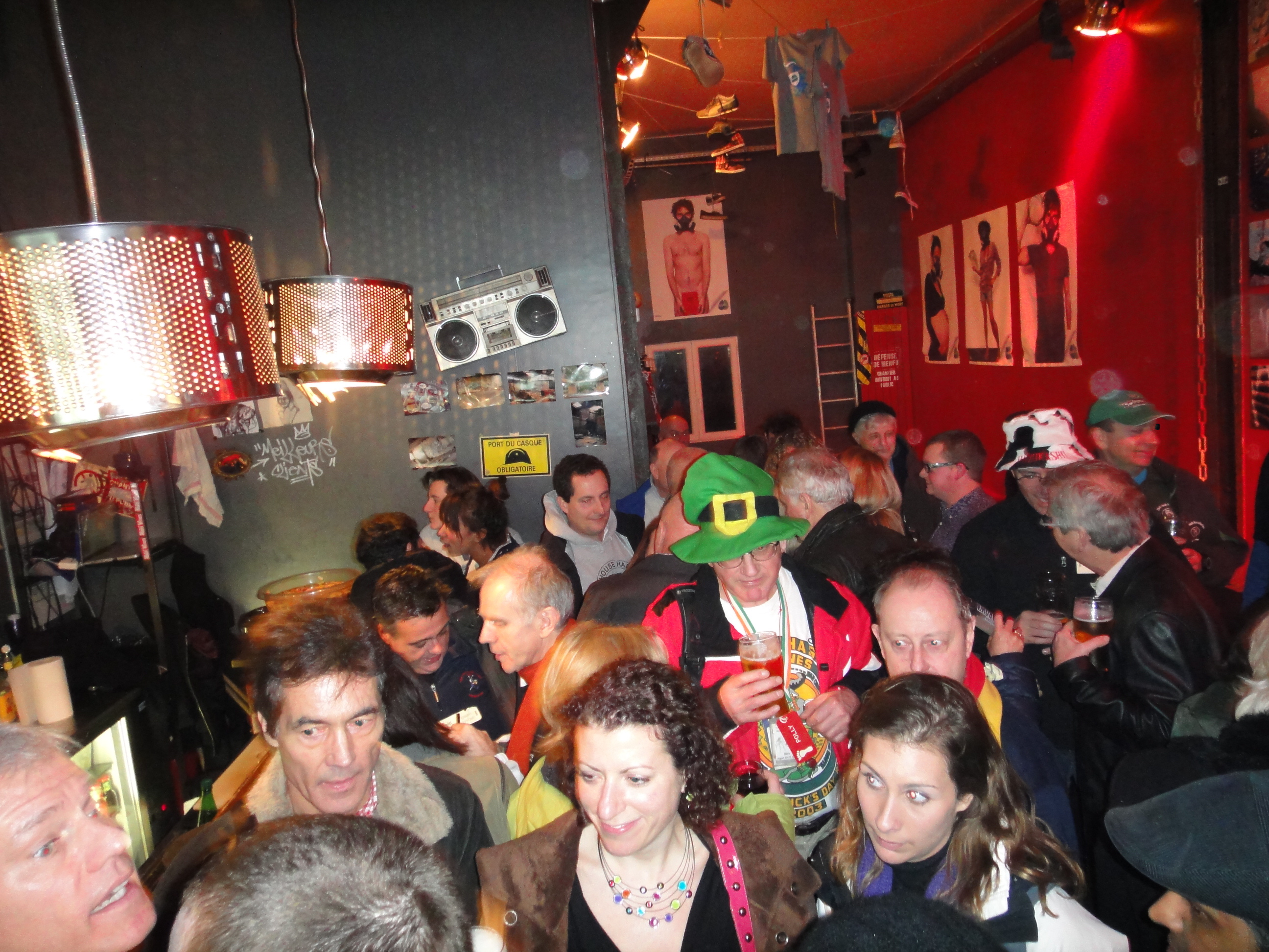 Friday night’s pub crawl started at the Metro station Parmentier. After much translating, and a little swearing, we had figured out the Metro/Train/Bus thing and managed the 3 trains to get to the start. We found our Hare for the evening, Pull the Prick Out, waiting behind the steps. We were told that this was a no check, 6 stop pub crawl with stops very close to each other, so off we went. I think we took approximately 80 steps around the corner from the start to the first bar called UFO. It was about the size of an airplane cockpit, filled with 40 or so still-way-too-sober hashers. We ordered a few pints, and began to socialize. Immediately I knew that I should have taken “Countries of Europe” refresher course, because I spent most of my time asking people how far away their “place” was from Paris. Seriously, can you point to Luxembourg on a map?