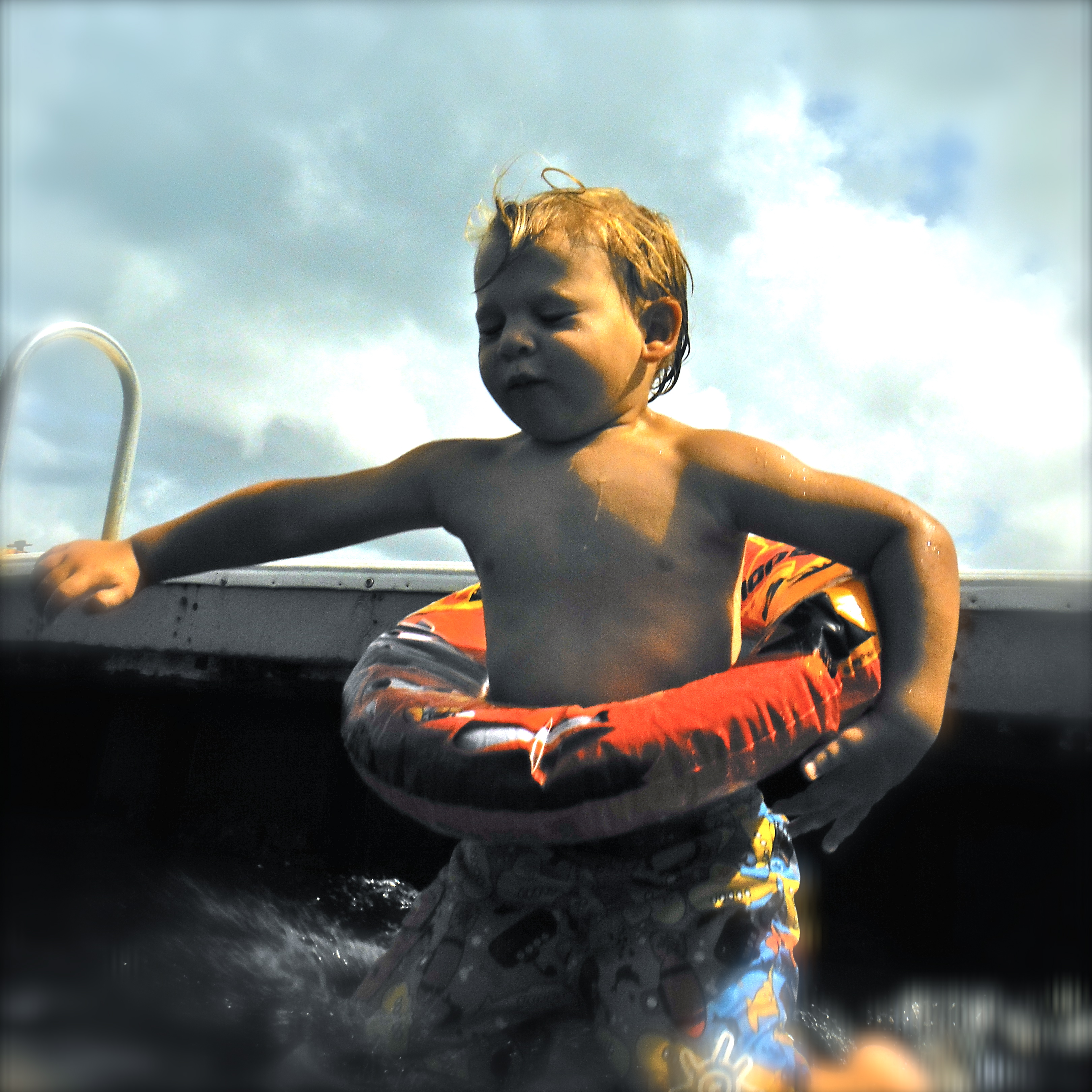 Gold Medal: Lane. This boy hasn’t met anything he won’t jump off of either into the water or onto the ground. He used to wait for someone to be in the water to catch him, not anymore. We finally had to outlaw the Triple Lindy, and ban all Rodney Dangerfield movies.