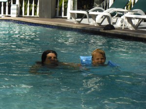 Gold Medal: Matilda. In one week, the big Miss M went from spinning in a SpongeBob ring, to tackling open water waves with some water wings, to crossing the entire pool herself doggie-paddle. She somehow channeled four months of swim lessons into seven day, she would swim to Cuba if I let her.  I think I might have to test her for doping.