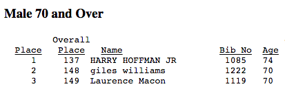 I waved goodbye to Harry and Giles at the course split, and wished them well on their remaining 10 miles. I finished my own race in a much better mood than I started, and was met at the finish line by smiling faces, kids with flowers, and a cold beer. And I’m happy to report, that Harry finished 1st place in his age division for the full marathon, followed closely by Giles. I couldn’t find Steve Rogers, however, listed anywhere.