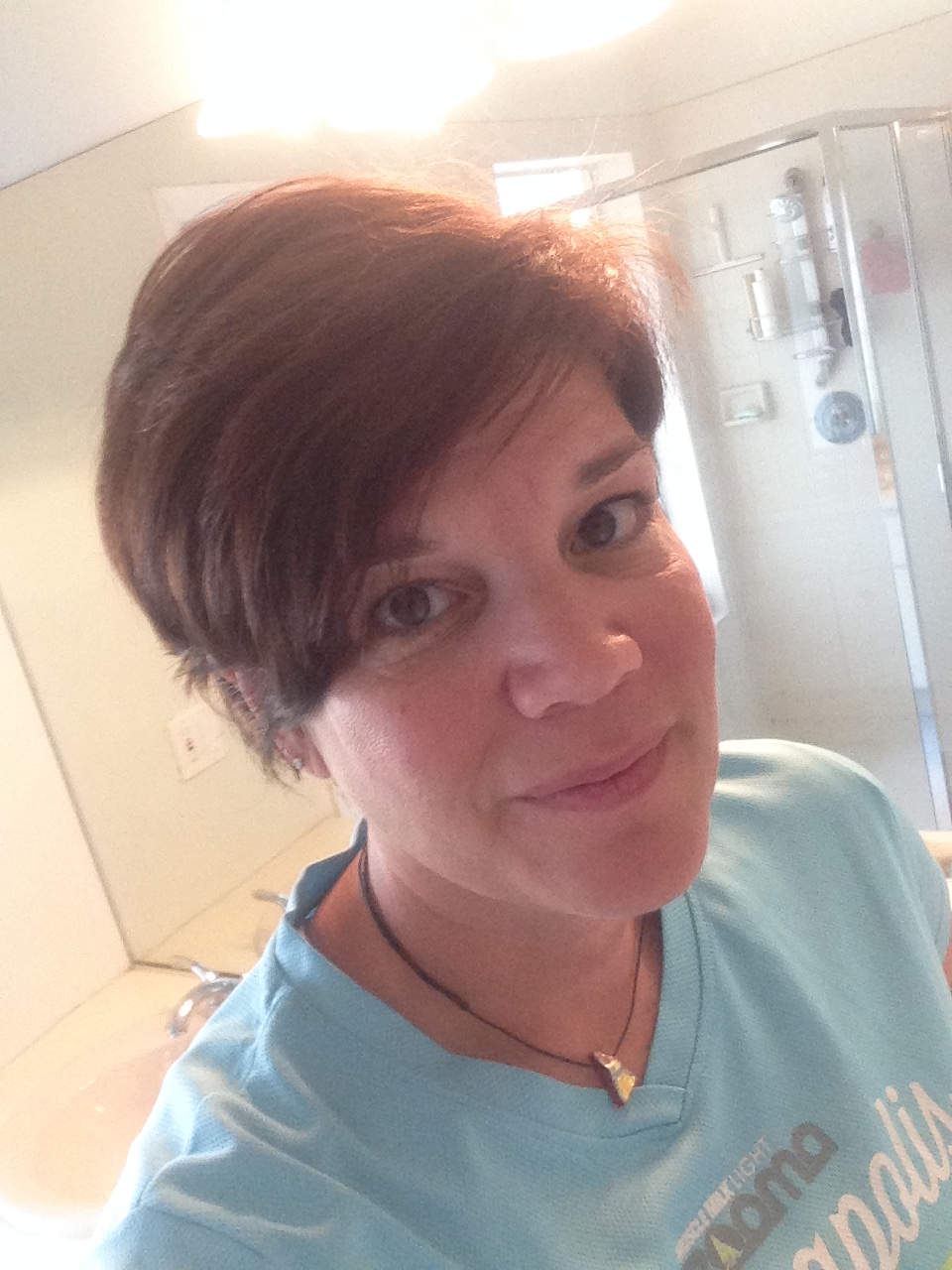 I ended the day with a daring move: trying out a new hairdresser. The guy who cut Matilda’s hair last week must have uttered the phrase “I love cutting hair” three times while primping her in the best fashion. Not bad for a guy on the B-shift at SuperCuts. My short locks were reaching mullet status, and my regular hair stylist is on maternity leave, so I bet on Brian. He did not disappoint.